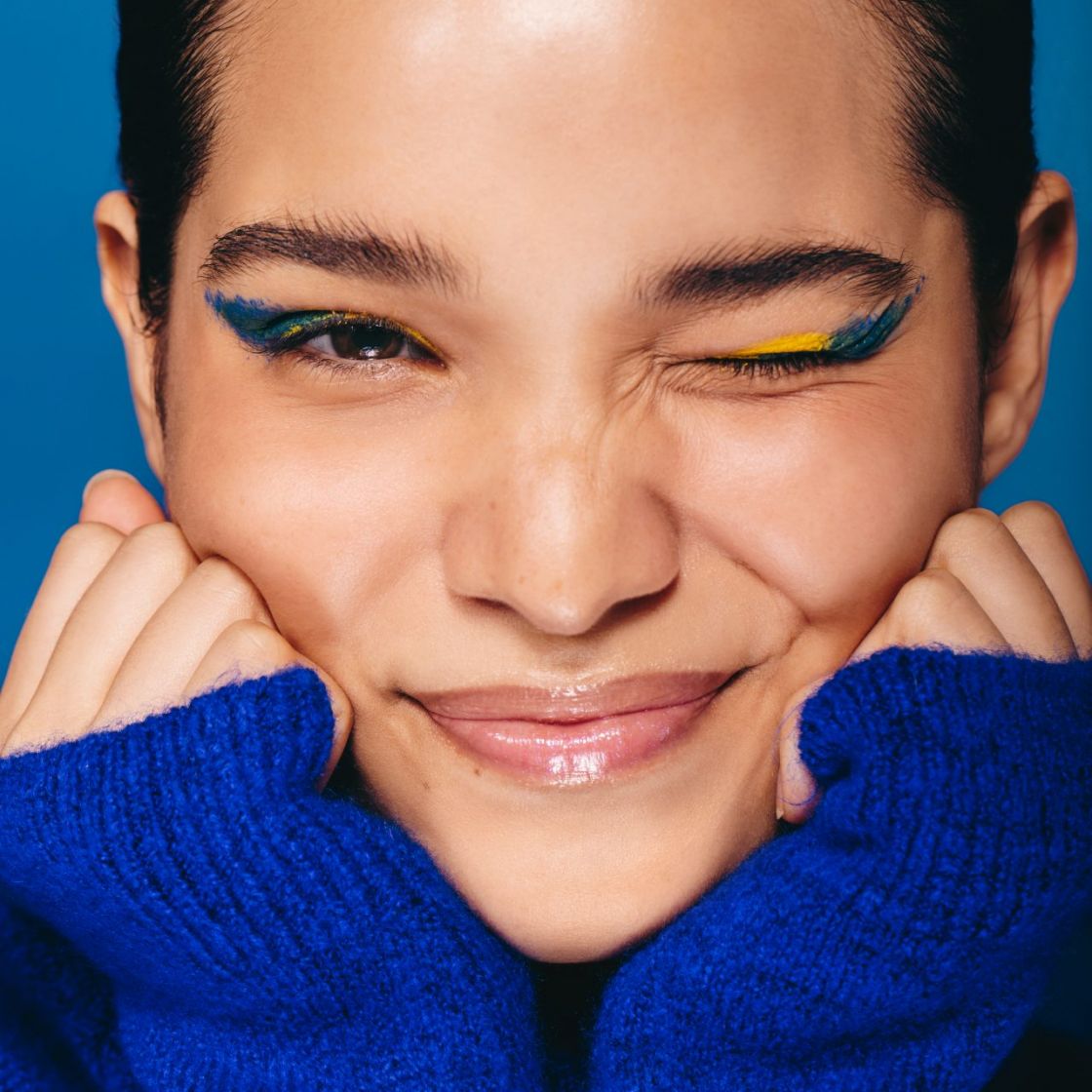 Niebieska kreska doskonale komponuje się z zielonymi oczami, podkreślając ich naturalną głębię i sprawiając, że spojrzenie staje się bardziej wyraziste. Brązowe i piwne tęczówki zyskują z kolei ciekawy kontrast, dzięki któremu oczy stają się optycznie jaśniejsze. To dlatego niebieski eyeliner jest uniwersalnym rozwiązaniem – potrafi podbić kolor tęczówki, niezależnie od jej odcienia. Co ważne, taki kolor sprawdzi się zarówno w letnich, jak i zimowych stylizacjach. Latem dodaje makijażowi świeżości i lekkości, pięknie współgrając z opaloną skórą i delikatnym blaskiem rozświetlacza. Natomiast zimą wprowadza efekt mroźnej elegancji – przypomina chłodny podmuch, który idealnie pasuje do stylizacji w odcieniach srebra, błękitu czy bieli.
