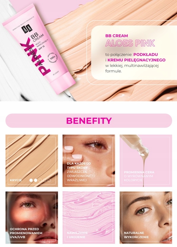 AA Pink Aloes Multi-Nawilżający Krem BB SPF 15 – naturalne wykończenie, intensywna pielęgnacja i codzienna ochrona