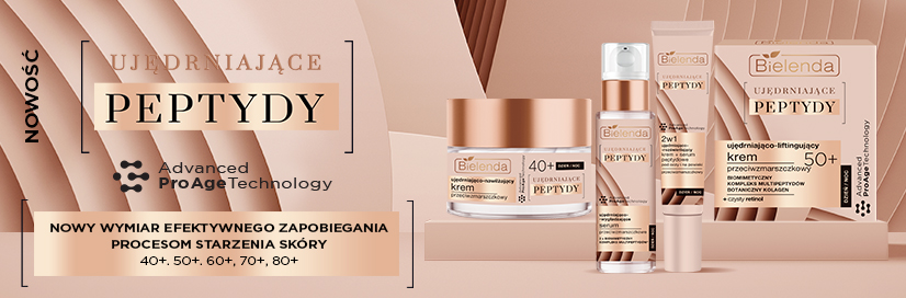 Linia Bielenda Ujędrniające Peptydy to nowoczesna pielęgnacja cery dojrzałej 40+, 50+ i więcej. Wśród produktów znajdziesz również kremy do twarzy i pod oczy, które dopełniają działanie serum. Dzięki technologii Advanced Pro Age i biomimetycznym peptydom kosmetyki z tej serii skutecznie poprawiają kondycję skóry. To doskonałe rozwiązanie, jeśli zależy Ci na odmłodzeniu, ujędrnieniu i widocznej poprawie elastyczności skóry każdego dnia.