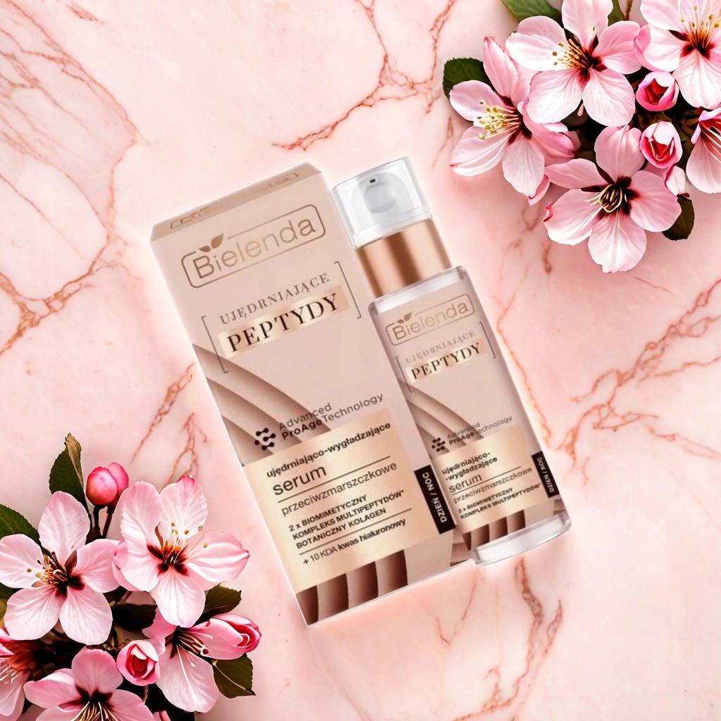 Codzienna pielęgnacja cery po 40. roku życia wymaga kosmetyków skutecznych, ale delikatnych. Bielenda Ujędrniające Peptydy Serum Przeciwzmarszczkowe na Dzień i na Noc to lekka formuła, która szybko się wchłania i nie obciąża skóry. Kosmetyk opracowano z myślą o kompleksowym działaniu przeciwstarzeniowym – wygładza zmarszczki i przeciwdziała utracie jędrności, jednocześnie wspierając naturalne mechanizmy regeneracyjne skóry. Ujędrniająco-wygładzające serum do twarzy Bielenda Ujędrniające Peptydy zawiera podwójny biomimetyczny kompleks multipeptydów, który pobudza odnowę komórkową i wzmacnia strukturę skóry. Co więcej, dzięki zaawansowanej formule produkt poprawia elastyczność i ogólny wygląd skóry już od pierwszych dni stosowania.