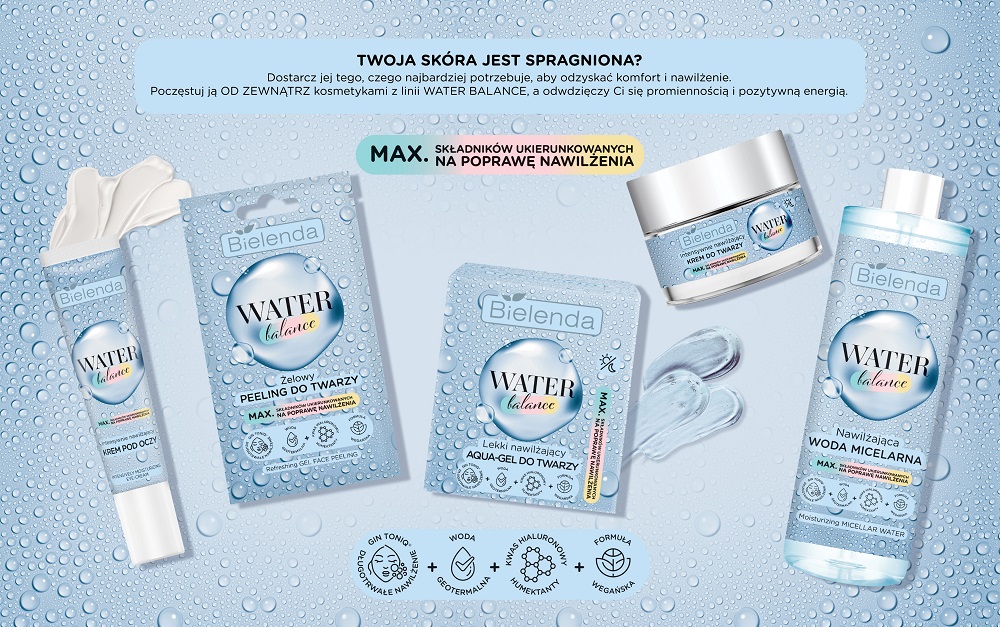 Czy Twoja skóra potrzebuje nawilżenia? Oto WATER BALANCE, linia, która rozwiąże ten problem. 10 produktów, które dostarczą Twojej cerze intensywnego nawilżenia i przywrócą jej naturalny komfort.