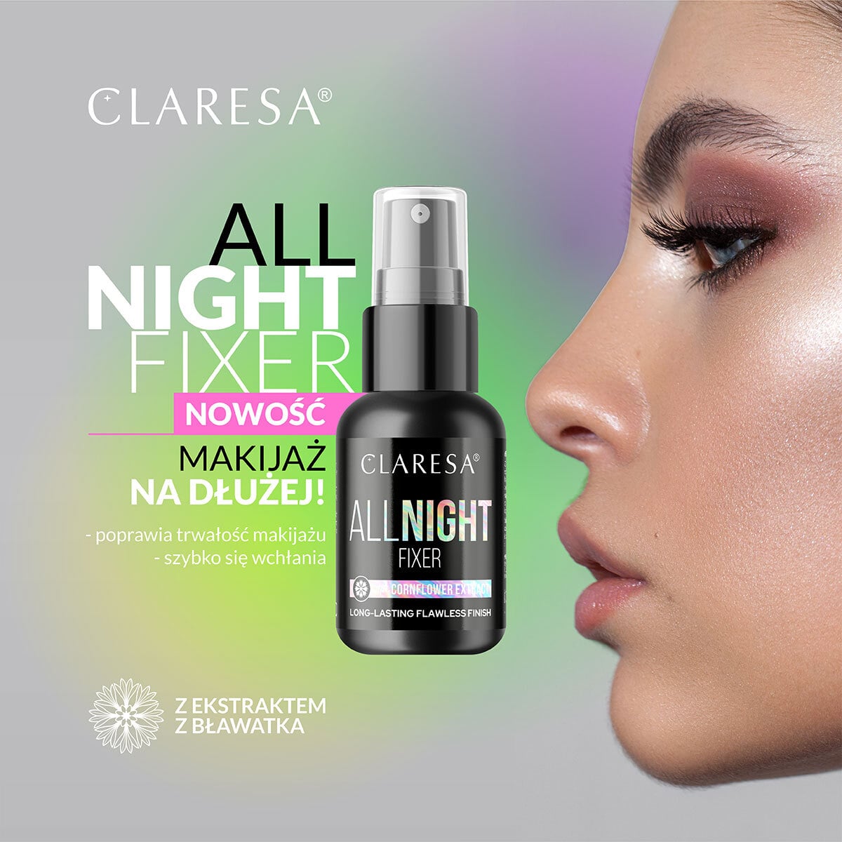 Makijaż, który przetrwa całą noc i pozostanie nieskazitelny? Claresa All Night Fixer Utrwalacz do Makijażu to lekka mgiełka, która skutecznie przedłuża trwałość makijażu i zapewnia naturalne wykończenie. Dzięki starannie dobranej formule tworzy ochronną warstwę, zabezpieczając makijaż przed ścieraniem i rozmazywaniem. Nie pozostawia smug ani plam, a delikatny atomizer równomiernie rozpyla produkt, sprawiając, że aplikacja jest szybka i wygodna. Co więcej, poręczne opakowanie pozwala zabrać go wszędzie – świetnie sprawdzi się w podróży lub jako niezbędny element codziennej kosmetyczki.