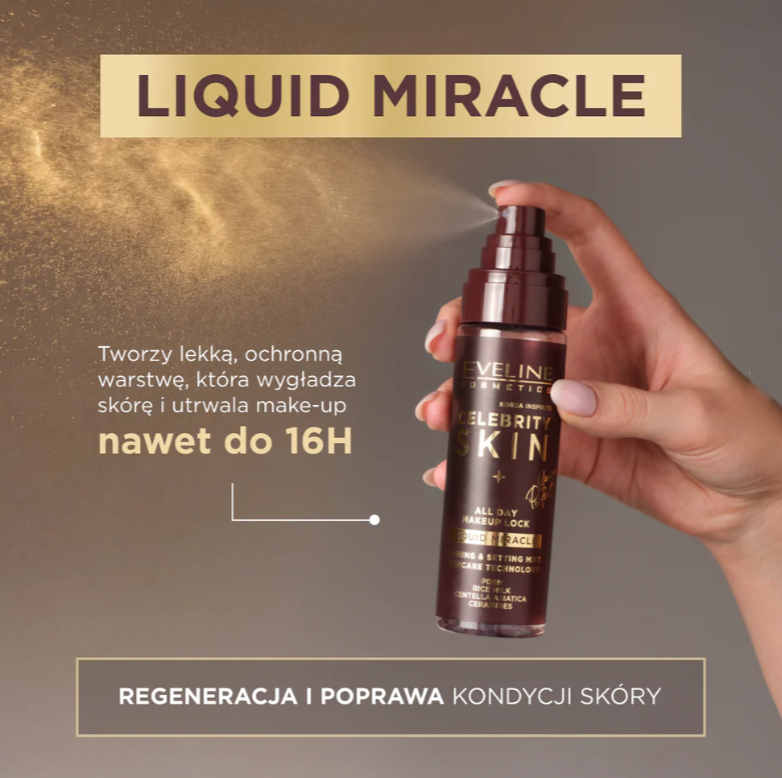 Mgiełka utrwalająco-pielęgnująca do makijażu Liquid Miracle Celebrity Skin – lekkość, która robi różnicę
