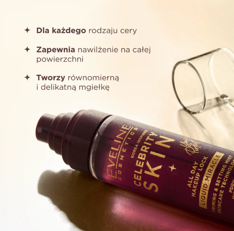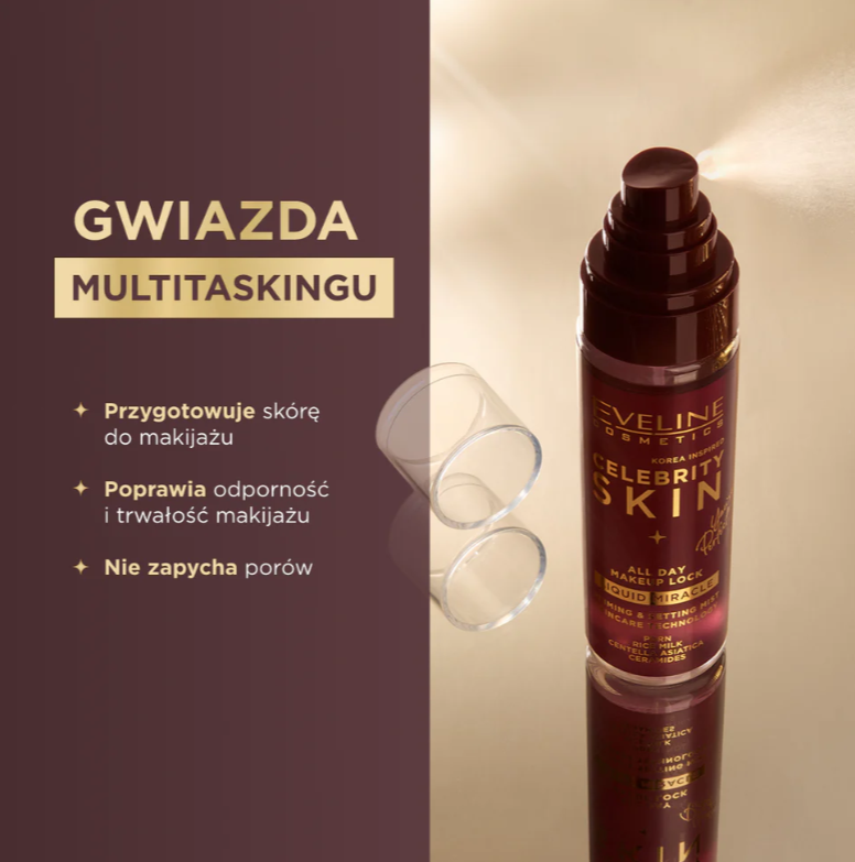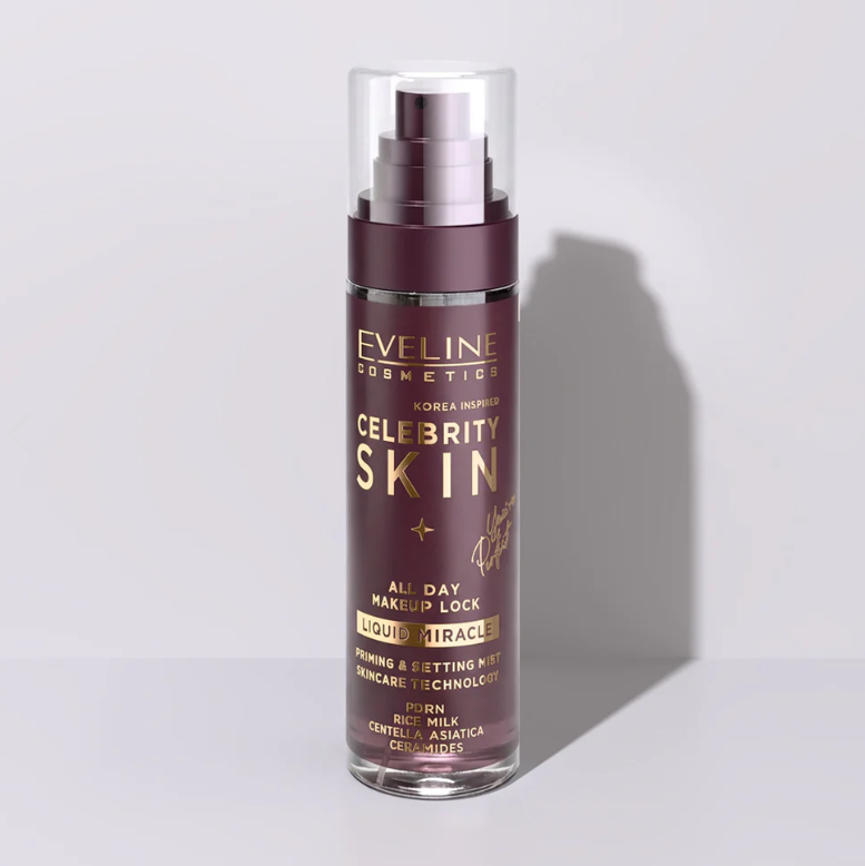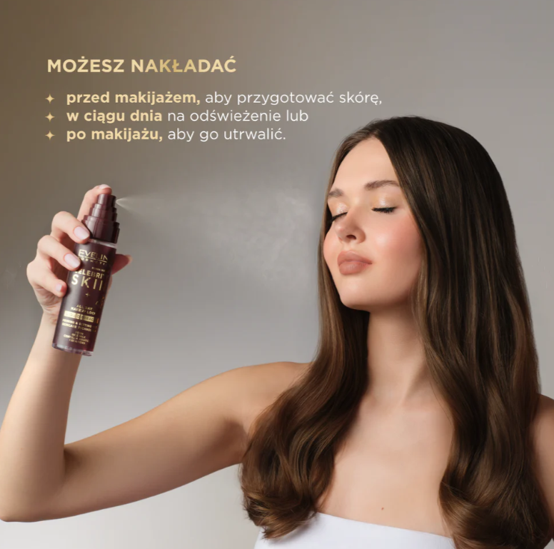 Mgiełka utrwalająco-pielęgnująca do makijażu Eveline Celebrity Skin – pielęgnacja inspirowana skincare