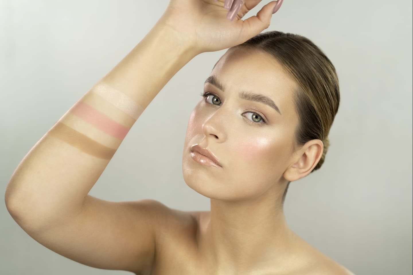 Najpierw nałóż bronzer wzdłuż linii żuchwy, boków czoła i pod kości policzkowe, aby wysmuklić twarz. Róż zaaplikuj na policzki, lekko rozcierając ku górze, by dodać świeżości. Rozświetlaczem muśnij szczyty kości policzkowych, grzbiet nosa i łuk kupidyna, aby uzyskać efekt promiennej cery. Pamiętaj, aby dobrze rozblendować granice między produktami – w ten sposób uzyskasz naturalny i spójny efekt.