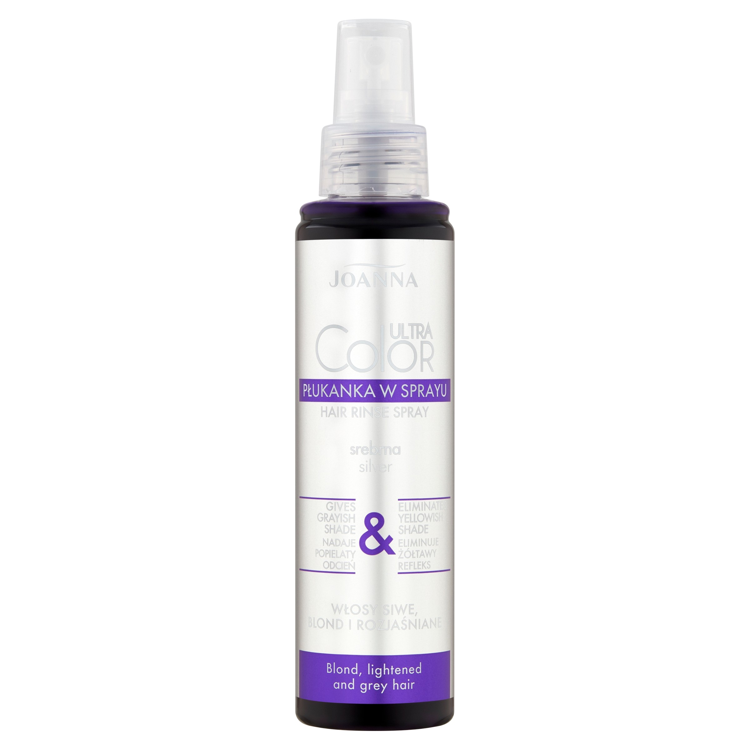 Srebrna płukanka w sprayu Ultra Color nadaje włosom rozjaśnianym i siwym popielaty odcień, dodając im jednocześnie blasku i nie niszcząc ich. Niweluje żółty kolor powstający na blond włosach, podkreślając ich jasny, lekko popielaty odcień. Ożywia naturalny połysk włosów, ułatwia ich rozczesywanie i sprawia, że są miłe w dotyku.