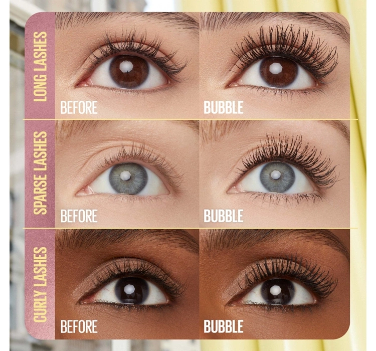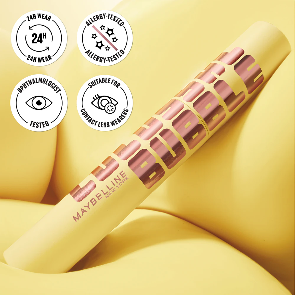 Formuła tuszu zapewnia komfort noszenia przez cały dzień – nie rozmazuje się, nie kruszy i nie wymaga poprawek. Colossal Bubble idealnie sprawdzi się u osób z wrażliwymi oczami oraz tych, które noszą soczewki kontaktowe. Tusz do rzęs Maybelline New York Colossal Bubble nie tylko podkreśla rzęsy, ale też je rozdziela i optycznie wydłuża, co nadaje spojrzeniu wyrazistości. Długotrwała formuła działa nawet do 24 godzin, pozwalając cieszyć się perfekcyjnym makijażem od rana do wieczora. Co więcej, jego konsystencja nie tworzy efektu maski, a głęboka czerń doskonale kontrastuje z białkiem oka. Tym samym otrzymujesz kosmetyk, który łączy wygodę, trwałość i efekt, jakiego oczekujesz.