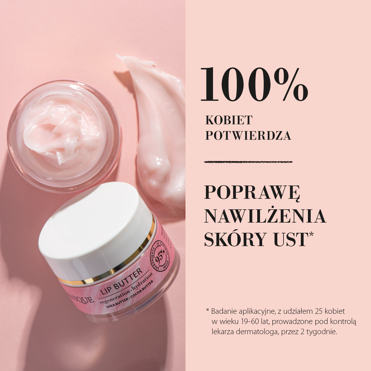 Formuła została wzbogacona o masło shea, które intensywnie regeneruje i łagodzi. Masełko do ust Organique zawiera masło kakaowe, które poprawia elastyczność i działa przeciwstarzeniowo. Dodatkowo olej migdałowy koi i chroni przed utratą wilgoci, a olej rycynowy nabłyszcza i wspiera regenerację. Odżywcze masło do ust nie zawiera konserwantów ani wody, dzięki czemu jest bezpieczne nawet dla bardzo wrażliwej skóry. W rezultacie kosmetyk można stosować także jako nocną maseczkę – nałożony grubszą warstwą zapewni głęboką regenerację do rana. Tym samym skóra ust zyskuje miękkość, ochronę i zdrowy wygląd każdego dnia.