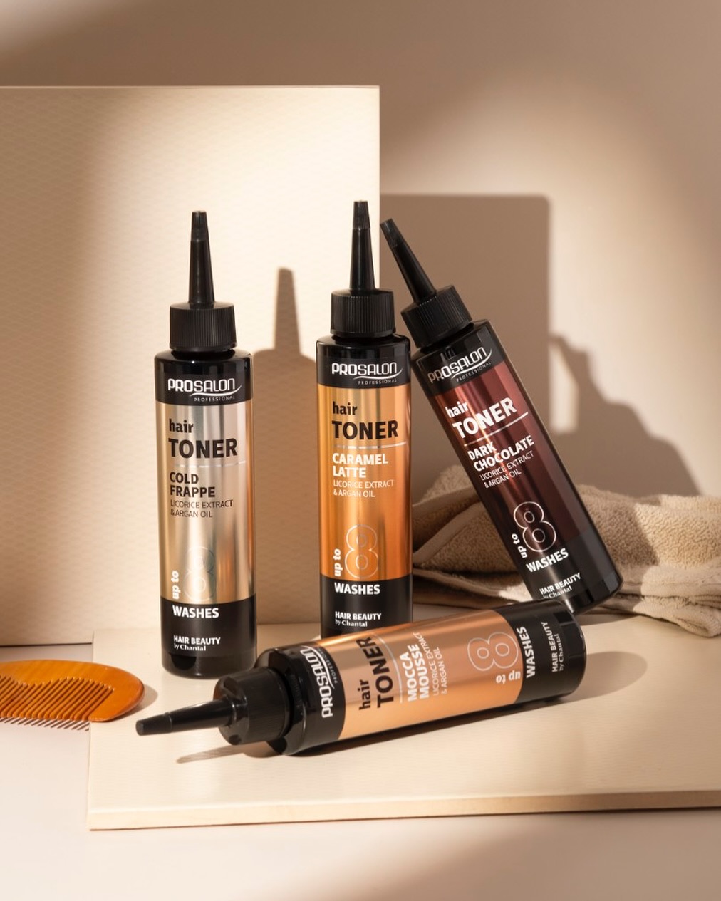 Z kolei jego formuła pielęgnacyjna to ukłon w stronę świadomej koloryzacji. Żelowy toner do włosów Prosalon Professional Hair Toner Caramel Latte zawiera olej arganowy oraz ekstrakt z lukrecji, które działają regenerująco i łagodząco. Dzięki temu włosy stają się miękkie, gładkie i lśniące, a skóra głowy jest ukojona. Na jasnych pasmach efekt będzie bardziej wyrazisty i rozświetlony, natomiast na ciemniejszych pojawią się subtelne refleksy. Toner do włosów Prosalon Professional to doskonałe połączenie pielęgnacji i koloru – bez ryzyka przesuszenia i bez konieczności wizyty u fryzjera. Tym samym możesz odmienić swój wygląd szybko, bezpiecznie i z efektem jak z salonu.