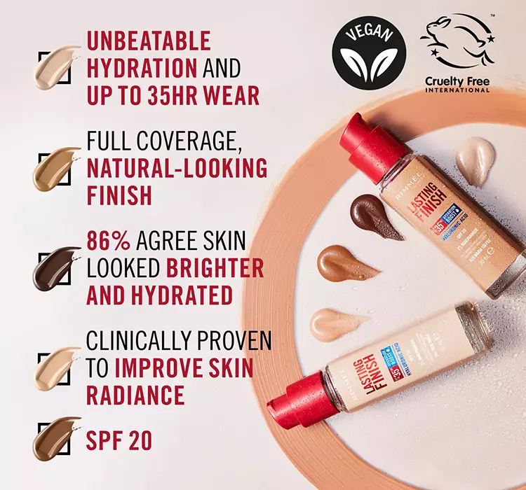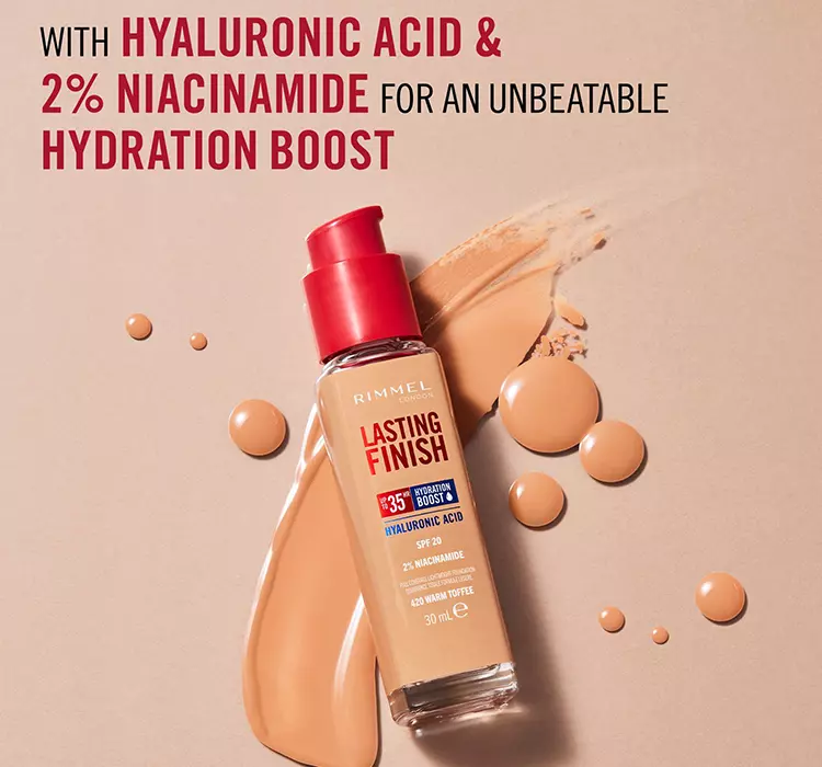 Wyjątkowa trwałość nie oznacza rezygnacji z pielęgnacji. Nawilżający podkład Rimmel Lasting Finish 35H Hydration Boost sprawia, że skóra pozostaje elastyczna, gładka i promienna przez cały dzień. Doskonale maskuje przebarwienia, zaczerwienienia i cienie pod oczami, a przy tym zachowuje naturalne wykończenie. Dodatkową zaletą jest szeroka gama odcieni – zarówno o tonacji zimnej, neutralnej, jak i ciepłej – co sprawia, że każda kobieta znajdzie idealny kolor dopasowany do swojej cery.