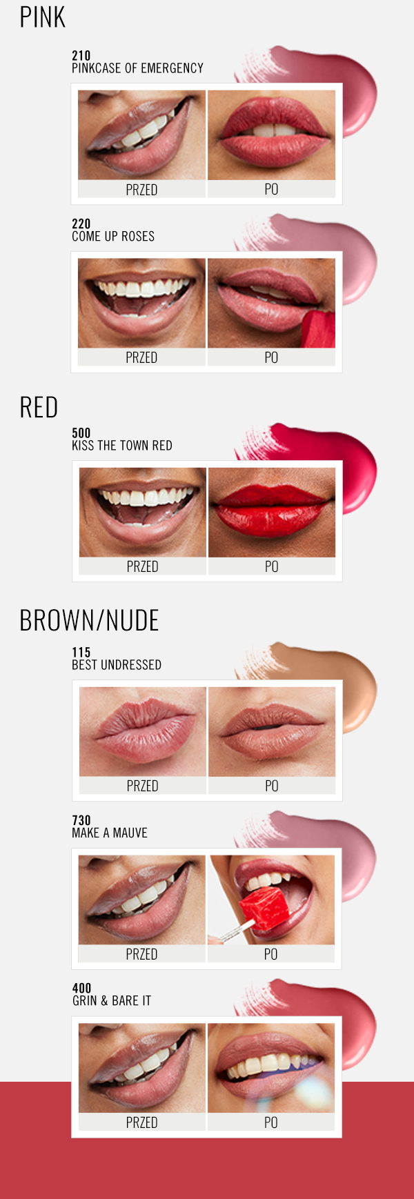 - Brak efektu klejenia – pomadka nie przenosi się na inne powierzchnie