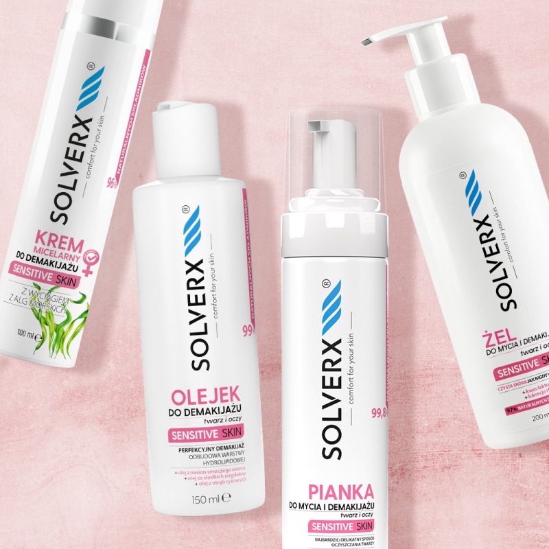 Linia Solverx Sensitive Skin zapewnia kompleksową pielęgnację skóry wrażliwej i naczynkowej. Kosmetyki z tej serii oczyszczają i nawilżają cerę, jednocześnie wzmacniając jej naturalną barierę ochronną. Dzięki odpowiednio dobranym składnikom łagodzą podrażnienia i przywracają skórze równowagę.