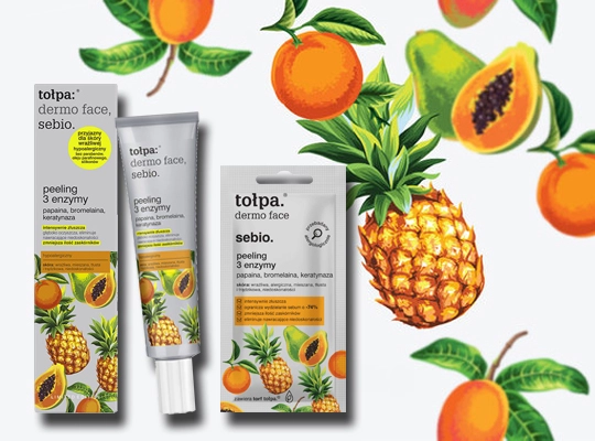 Peeling Tołpa 3 Enzymy oczyszcza pory, redukuje uporczywe niedoskonałości i zmniejsza ilość zaskórników. Jego wyselekcjonowana formuła zawiera także torf tołpa® oraz glicerynę, które wspierają regenerację skóry i zapewniają odpowiednie nawilżenie. Kosmetyk ogranicza wydzielanie sebum, jednocześnie pozostawiając cerę matową, gładką i odświeżoną.