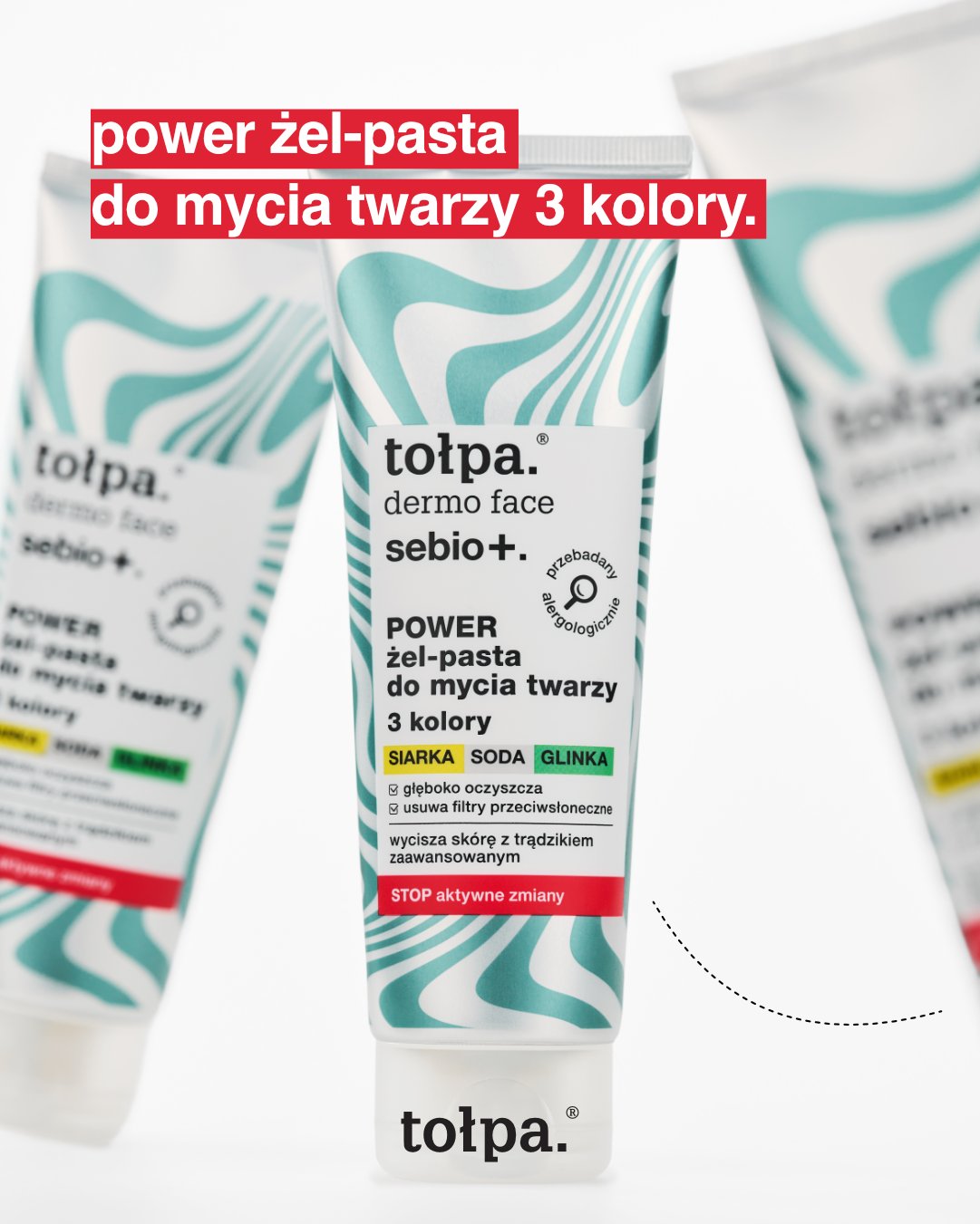 Tołpa Dermo Face Sebio+ Power Żel-Pasta do Mycia Twarzy to wyjątkowe połączenie żelu i pasty oczyszczającej, które stworzono z myślą o skórze wrażliwej, trądzikowej i problematycznej. Innowacyjna, trzykolorowa formuła oparta na siarce, sodzie i glince pozwala uzyskać efekt intensywnego oczyszczenia bez naruszania bariery hydrolipidowej skóry. Żel-pasta Tołpa Dermo Face Sebio+ Power działa wielopoziomowo – skutecznie usuwa nadmiar sebum, pozostałości makijażu oraz filtry przeciwsłoneczne. Co więcej, delikatnie złuszcza martwy naskórek, wygładza skórę i zmniejsza widoczność nierówności bez użycia jakichkolwiek drobinek. Jej niezasychająca konsystencja sprawia, że codzienne oczyszczanie staje się komfortowe i nie powoduje uczucia ściągnięcia. Regularne stosowanie hamuje rozwój bakterii odpowiedzialnych za powstawanie niedoskonałości, dzięki czemu skóra staje się spokojniejsza i mniej podatna na zaostrzenia zmian trądzikowych.