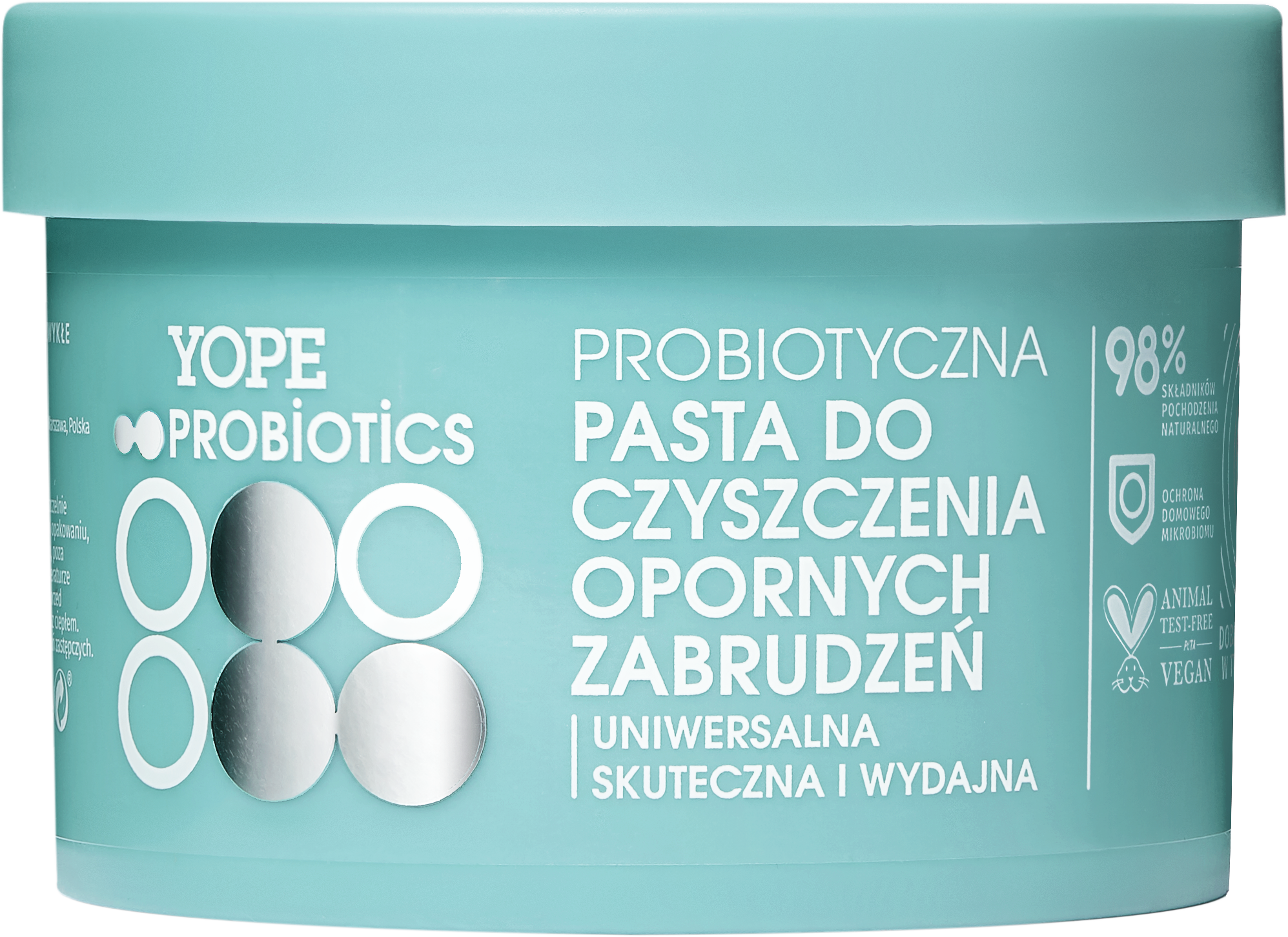 Probiotyczna pasta do czyszczenia opornych zabrudzeń. Dzięki swojej formie jest bardzo skuteczna i wydajna. Wyczyści trudne zabrudzenia w kuchni, łazience, na balkonie i gdzie tylko potrzebujesz higienicznej czystości. Dzięki zawartości środków powierzchniowo czynnych czyści głęboko i efektywnie.