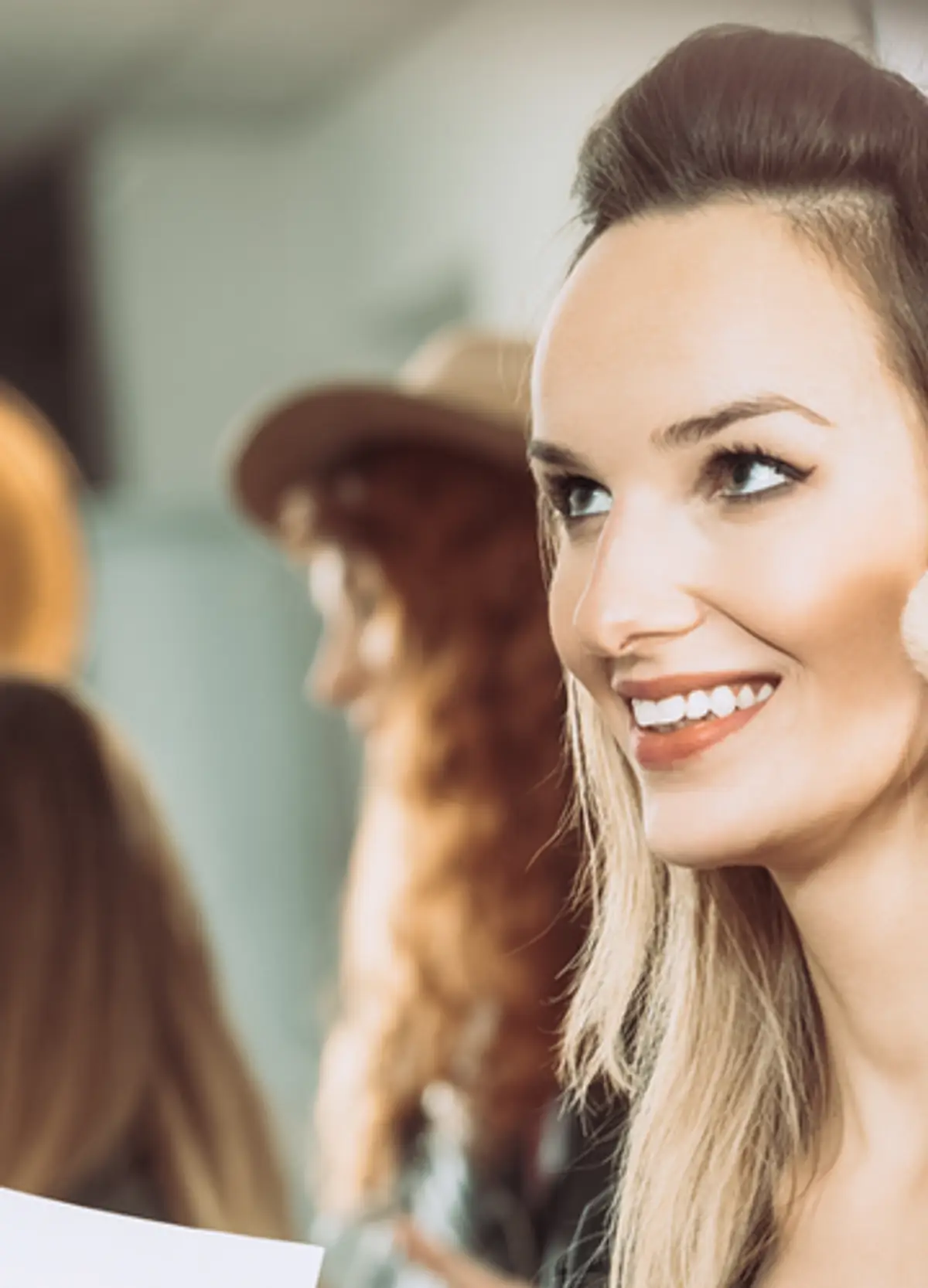 - Róż do policzków – delikatnie podkreśli policzki i doda skórze zdrowego, świeżego wyglądu.
